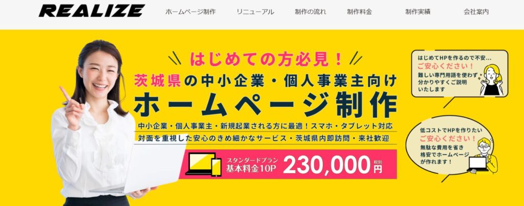 月額費用・更新料がかからず、ランニングコストを抑えられるホームページ制作会社です。通常プランでは参考デザインをもとに希望に沿ったサイトを制作し、自社サイトにも同プランを採用。ネットショップ制作は別途見積りで約40万円前後です。ローン契約は不要で、解約も1か月前の連絡で対応可能。茨城県内で多数の実績があり、安心して任せられる制作会社として信頼されています。