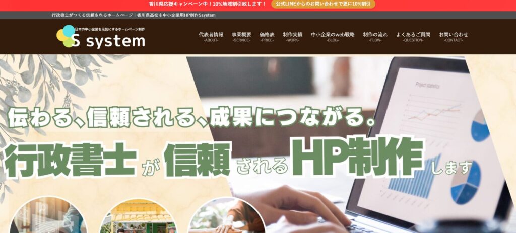 私たちは香川県高松市・栗林エリアで、中小企業のWebマーケティングを支援しています。地域に根ざした行政書士として、補助金制度を活用しながら、費用を抑えて効果的なホームページ制作を実現。申請書類の作成や計画書のアドバイスにも対応し、初めての方でも安心です。また、正確で信頼性の高いコンテンツ設計により、「信頼できる会社」として評価されるWebサイトを制作。さらに、建設業や飲食業など許認可が必要な業種にも対応し、行政手続きとWeb制作を一括でサポートします。地域の中小企業の力が、地域を元気にすると信じて。私たちは、その第一歩をWebでお手伝いします。