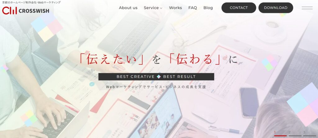 株式会社クロスウィッシュは、京都を拠点にWebサイト制作とWebマーケティングをワンストップで提供する会社です。お客様ごとの課題に合わせてオーダーメイドで戦略を立案し、アクセス解析やSEOを活用して成約率を高める効果的なサイトを制作します。魅力を伝えるためのライティングや撮影、WordPressの構築・カスタマイズにも強く、公開後の保守・改善サポートも充実。見た目だけでなく「成果が出る」Webサイトづくりをトータルにサポートします。